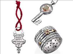 каббалистических украшений из золота и серебра, украшенная натуральными камнями — кольца, подвески, кулоны на цепочках и красных нитках — находится в National Diamond Centre (by Caprice) в Иерусалиме.
