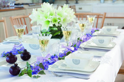 - подарочные наборы товаров для праздничного стола, ванной и спальни (например, нарядная скатерть, набор стеклянной посуды в ретро-стиле и комплект столовых приборов) за 199 шек.,