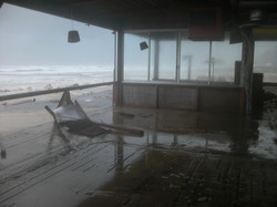 -Буря началась в ночь на воскресенье около 11 часов, — рассказывает о пережитом совладелец ресторана «Тайо» Амир Сорсино. – Посетители еле успели покинуть ресторан, как начался ураган. Волны затопили зал, в разбитые окна заносило столы из прибрежных ресторанов Ришон ле-Циона (как мы потом узнали), наша мебель уплывала вместе с волнами. Мы с партнерами всю ночь были в ресторане, пытались спасти остатки оборудования и мебели, нас много раз накрывало волнами и тогда становилось по-настоящему страшно. Утром в воскресенье разошлись. Стену ресторана, смотрящую на море, смыло, внутрь нанесло тонну песка, мебель, холодильники, кухонное оборудование расшвыряло в радиусе десятков метров и поломало волнами… Жуткое зрелище.